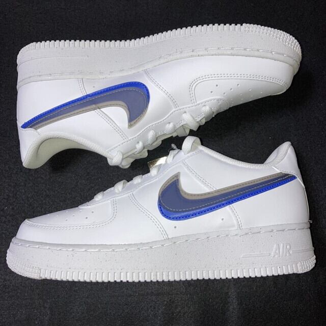 ガールズ レディース ウィメンズ ナイキ エアフォース1 ロー インパクト ネクスト ネイチャー グレードスクール ダブルスウッシュ ホワイト / ブラック - ハイパーロイヤル ブルー 24.5センチ