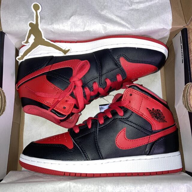 エアジョーダン1 MID GS 黒 赤 白 25cm 箱付き