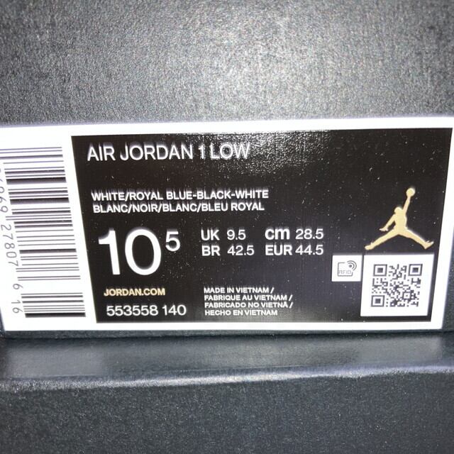 nike air jordan 1 low white / royal blue - black 28.5cm