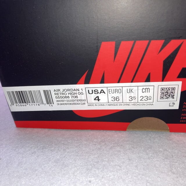 nike air jordan 1 retro high og " brotherhood " university gold / light bordeaux - white 23cm