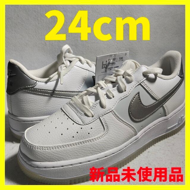 キッズ レディース ウィメンズ ナイキ エア フォース 1 ホワイト / メタリック シルバー 24センチ