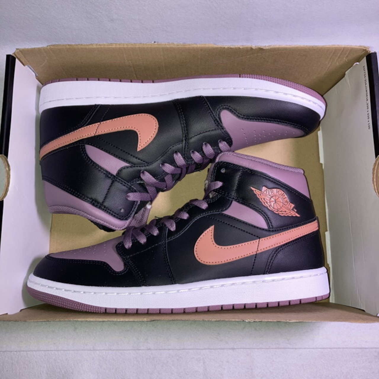 エアジョーダン1 MID SE 黒 パープル ピンク 白 28cm 箱下半分付き