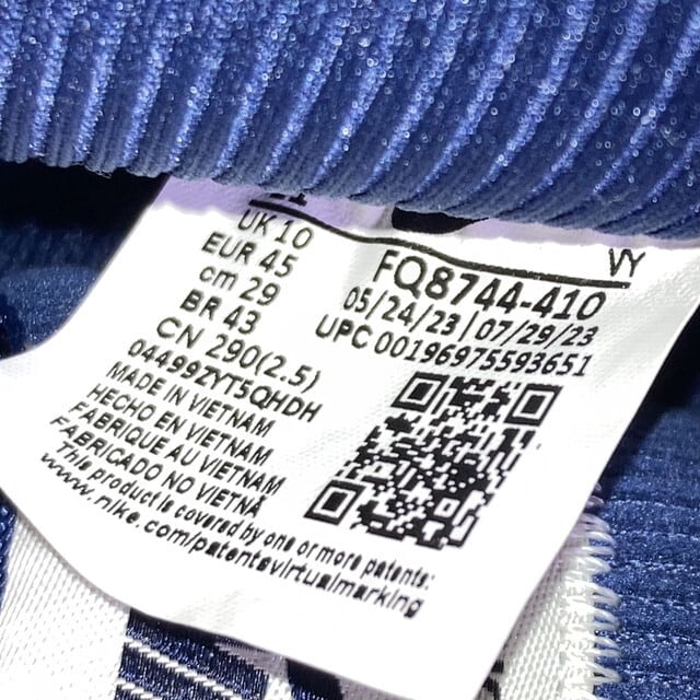 トゥにはブラックのツイード、アッパーとサイドのスウッシュはブラウンのコーデュロイ、アイステイとヒールパネルはネイビーのスウェード、シュータン及びインナーにはネイビーのコーデュロイ、ヒールタブはブラウンのスウェード、そしてサイドパネルには千鳥格子でアクセントをプラス。