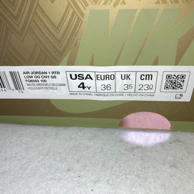 エアジョーダン1 ロー イヤーオブドラゴン 白 金 緑 23cm 箱下半分付き