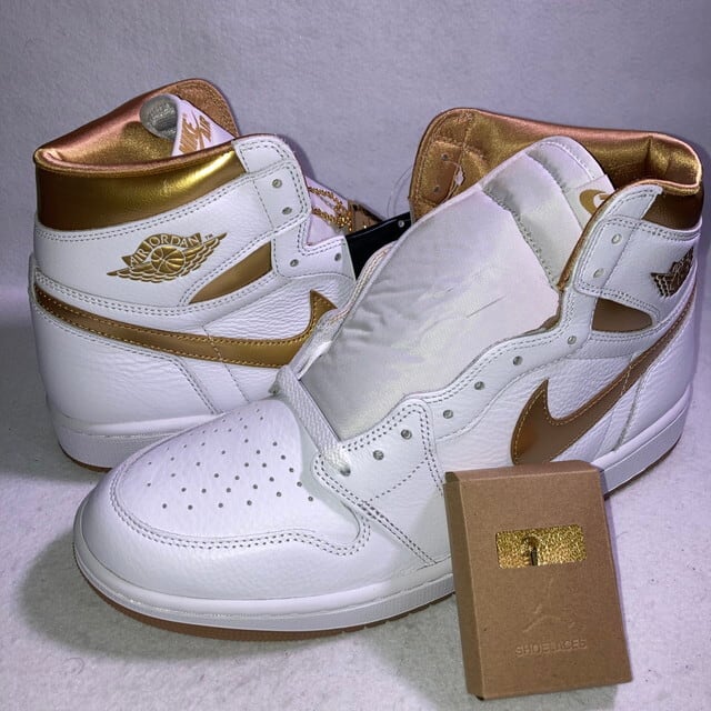 nike air jordan 1 retro high og white / metallic gold size12 29cm