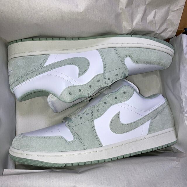 エアジョーダン1 ロー 白 緑 ライトグリーン スエード 31cm 箱付き