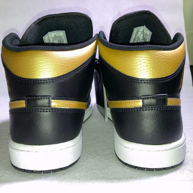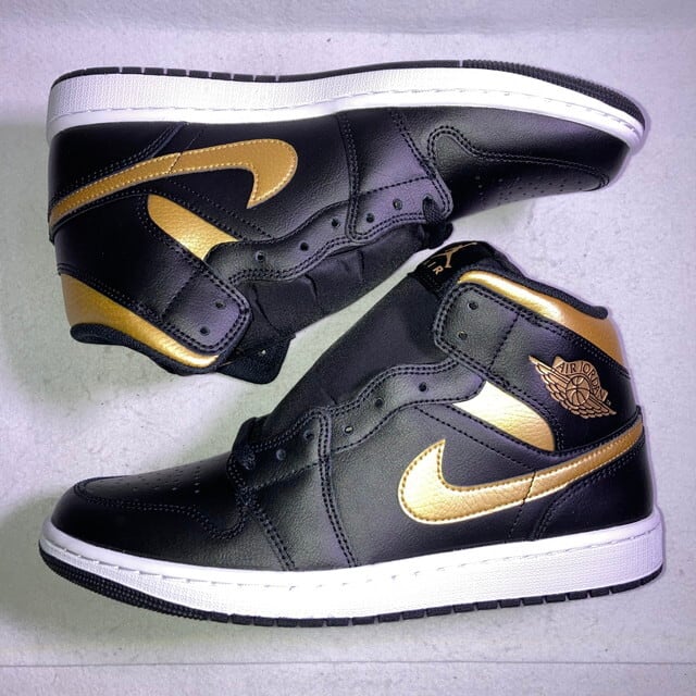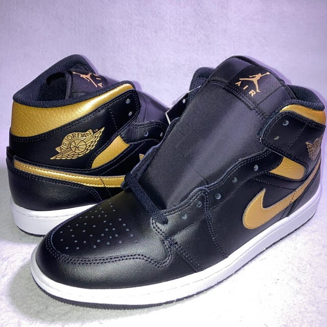 nike air jordan 1 mid black / metallic gold - white size10 28cm