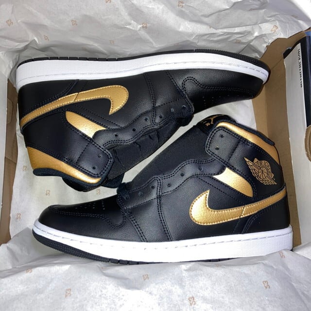 エアジョーダン1 MID 黒 金 白 28cm 箱付き
